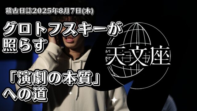 稽古日誌 脳みそが弾け飛びそうな執筆現場から〜グロトフスキーが照らす「演劇の本質」への道 8月 8, 2025 tenmonza https://tenmonza.jp/wp-content/uploads/2020/09/Page-1-quality100-1.jpg 劇団天文座