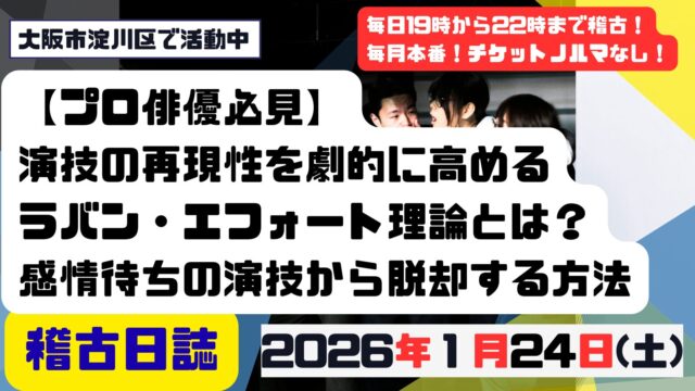 稽古日誌 【プロ俳優必見】演技の再現性を劇的に高めるラバン・エフォート理論とは?感情待ちの演技から脱却する方法 1月 25, 2026 tenmonza https://tenmonza.jp/wp-content/uploads/2020/09/Page-1-quality100-1.jpg 劇団天文座