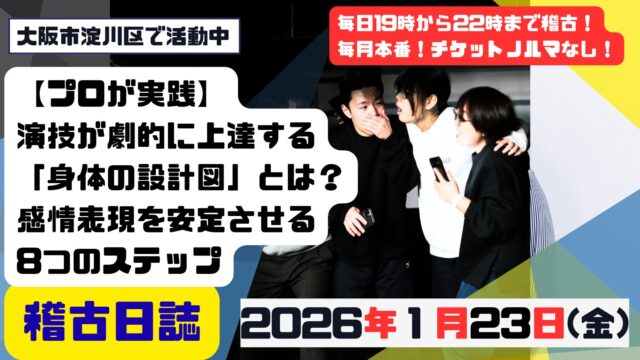 稽古日誌 【プロが実践】演技が劇的に上達する「身体の設計図」とは?感情表現を安定させる8つのステップ 1月 24, 2026 tenmonza https://tenmonza.jp/wp-content/uploads/2020/09/Page-1-quality100-1.jpg 劇団天文座